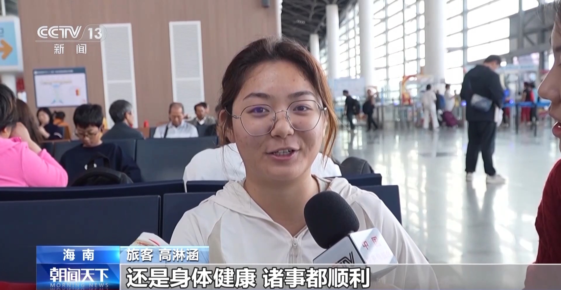 旅客 海热姑丽:这次我带了爸爸、妈妈、小姨,还有小姨的女儿一起来海南。以前都是我回新疆过年。他们供我读大学很不容易,我现在已经上班了,攒了一点钱带他们来这边旅游。